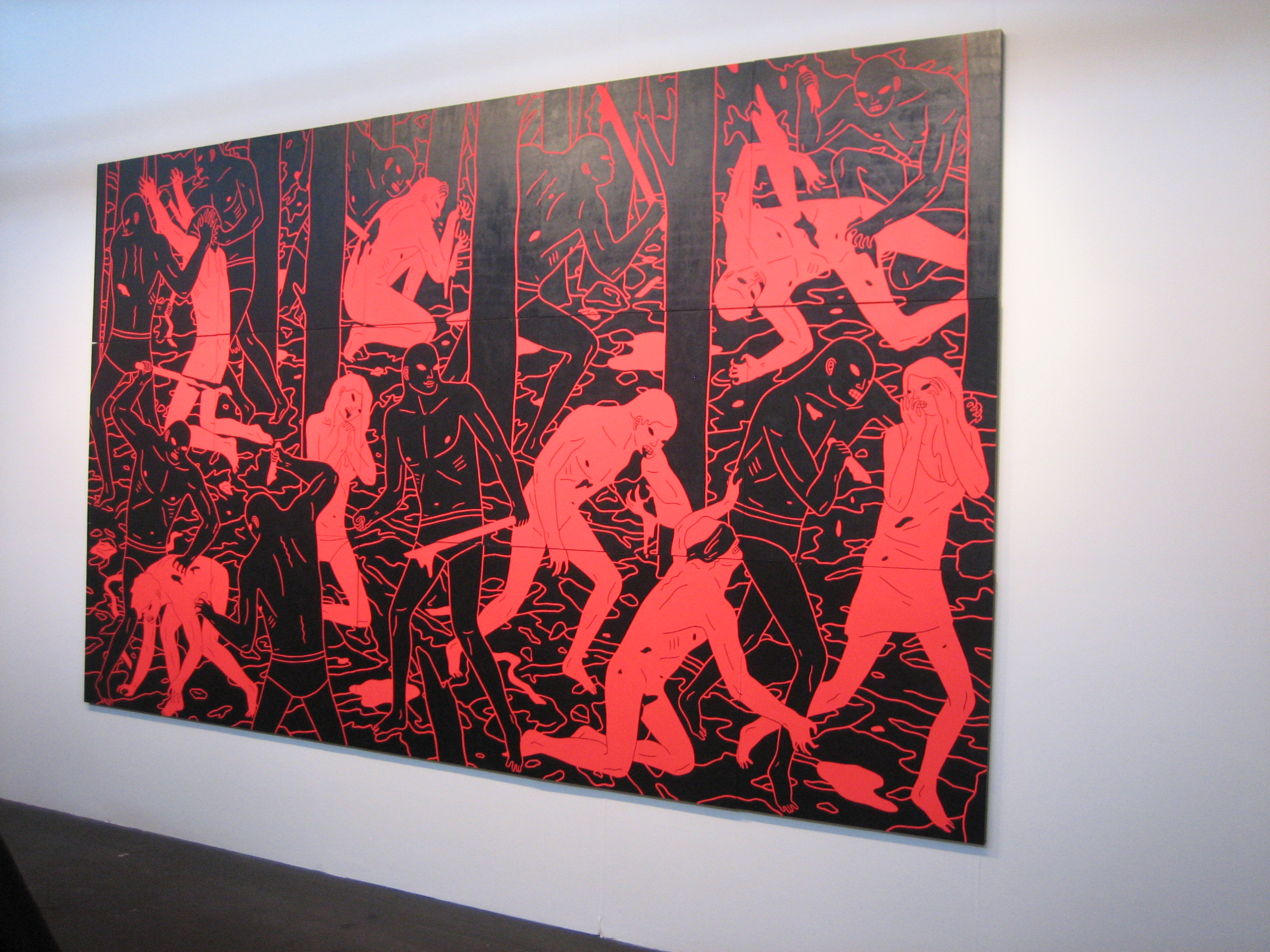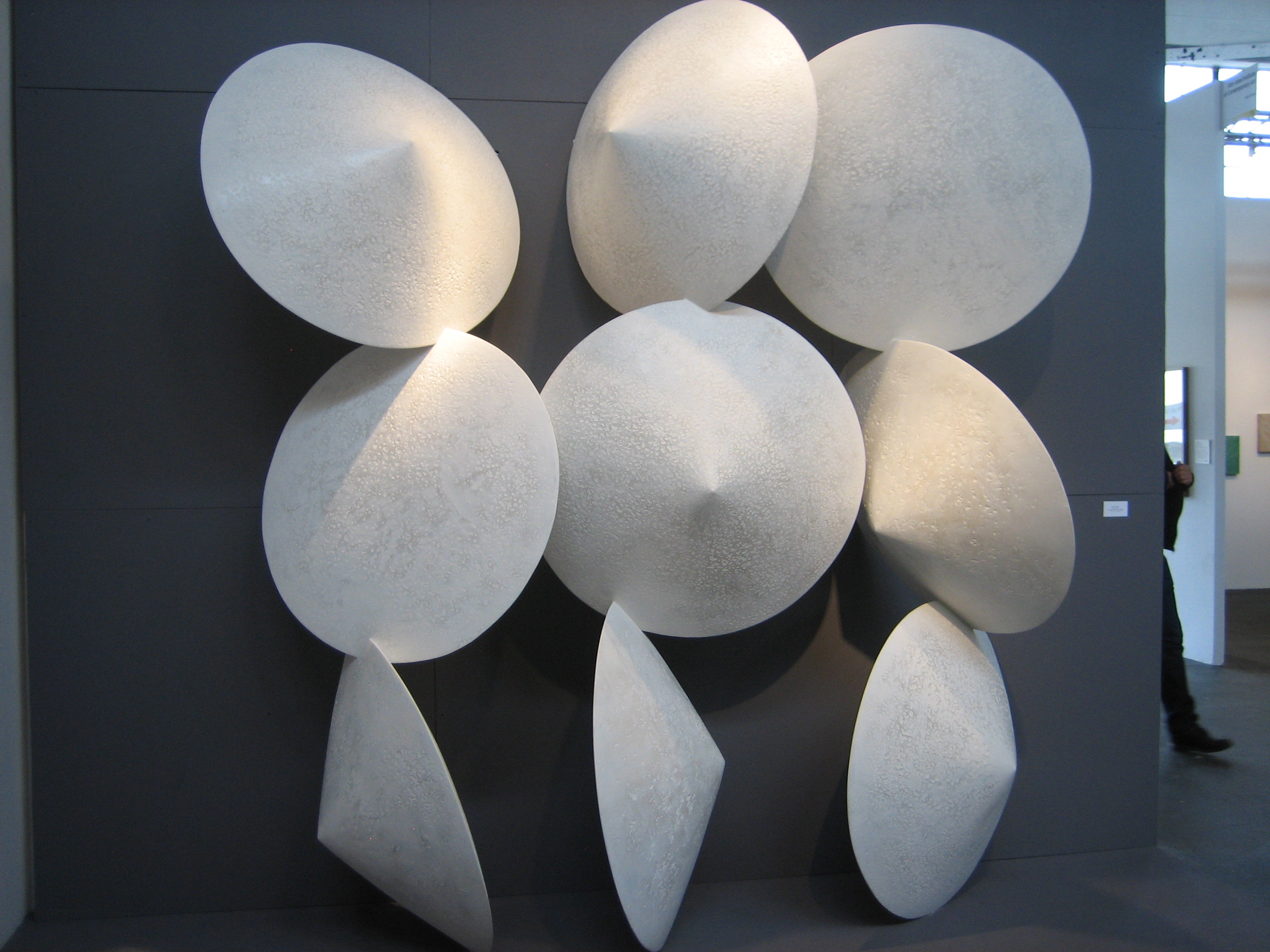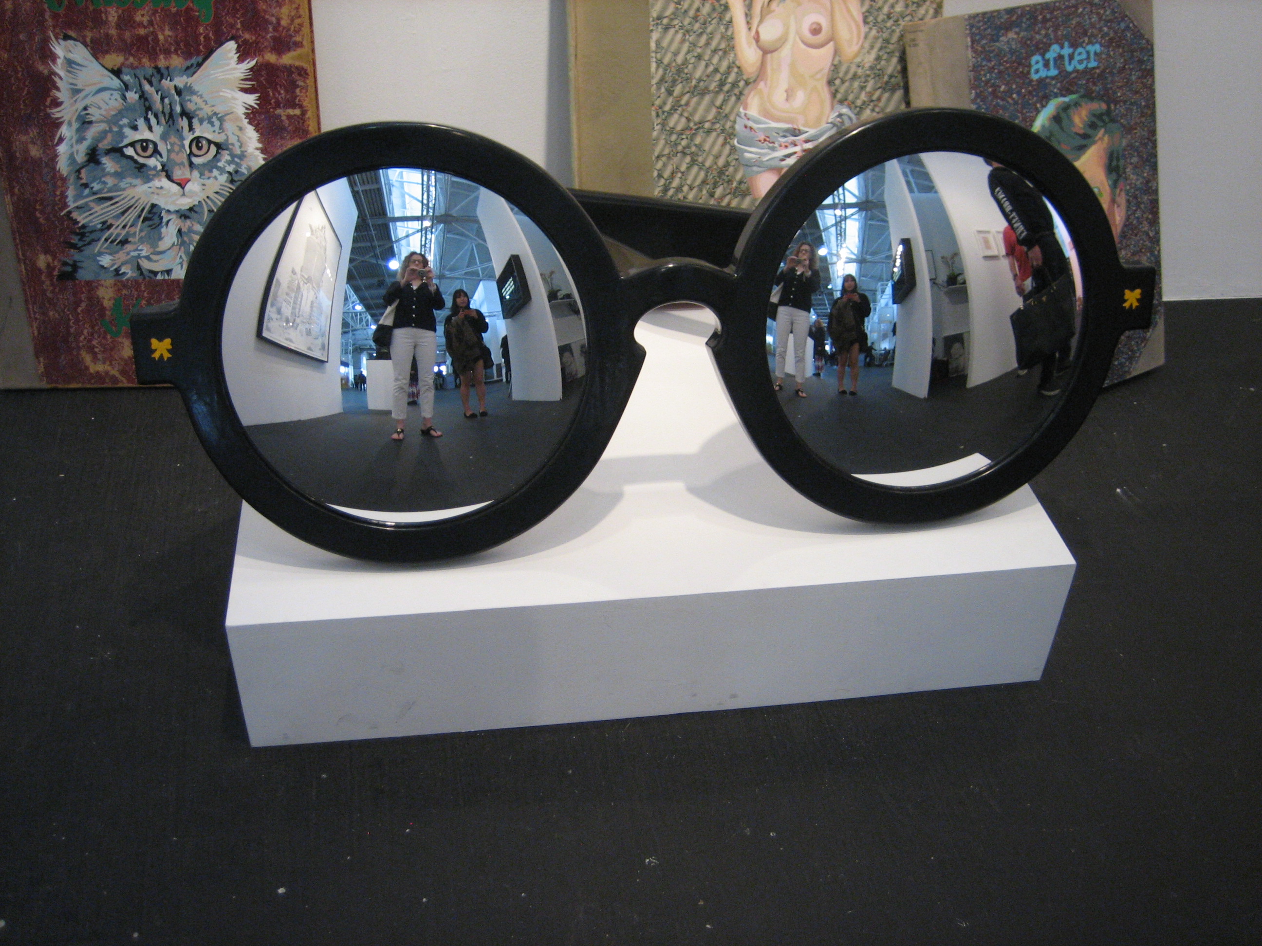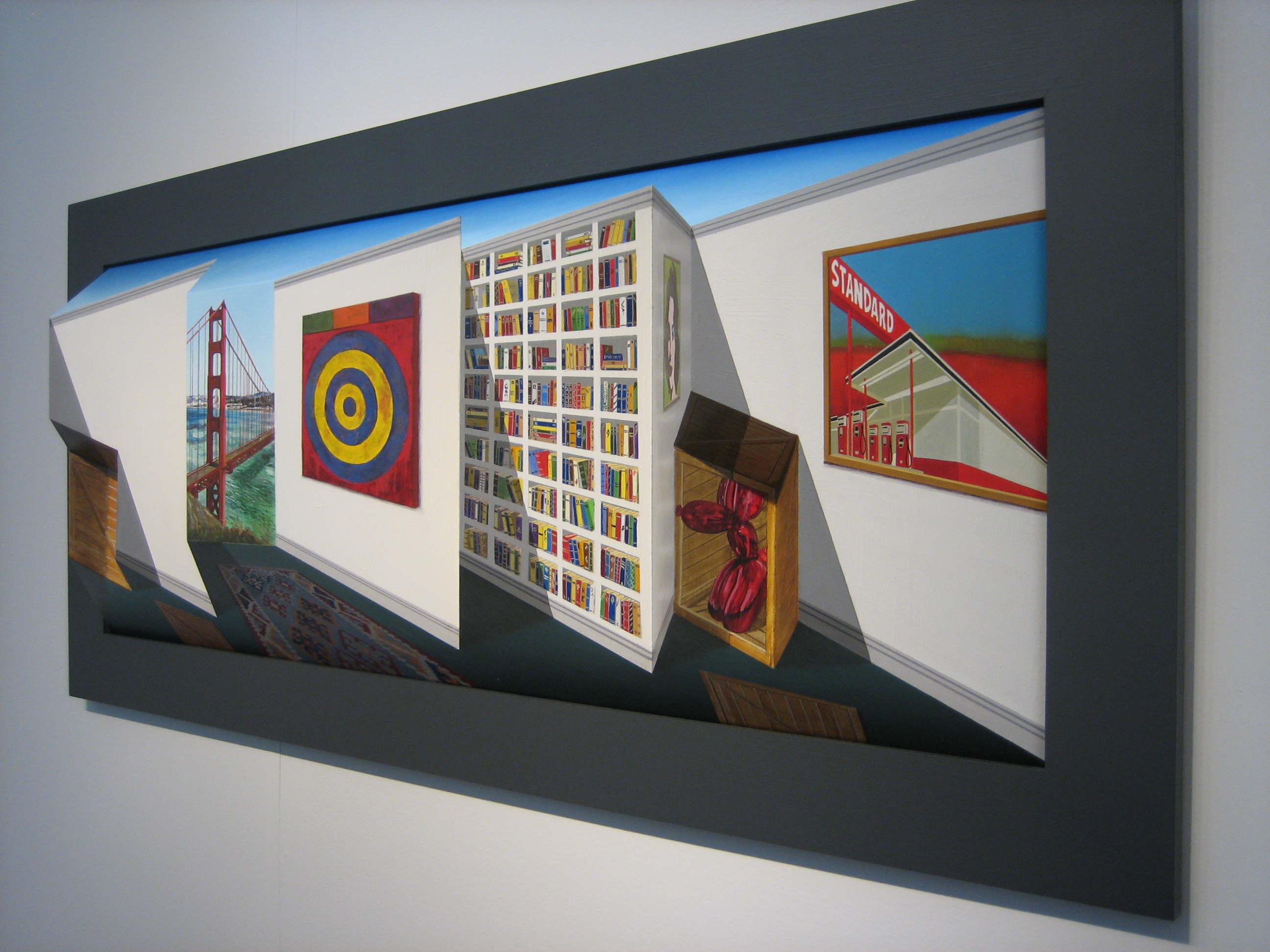 The latest rendition of Art Market San Francisco, May 15-18, 2014, was a mixed presentation of various forms of contemporary art, from high brow to low.  On view were works in all shapes and sizes, from painting to sculpture to videography, presented by over 70 galleries from across the nation.  Touted as the Bay area’s only contemporary and modern art fair, the cavernous location in Fort Mason Pavilion provided more than enough space for galleries to display and hawk their wares; maybe too much space.  This writer visited on Saturday, May 17 and found the place to be rather empty of visitors.  Has interest in giant art markets peaked?  Are art collectors finding this set up too exhausting, too impersonal, too uninspiring, too expensive?  I roamed the pavilion searching for new and exciting art; something innovative that would knock my socks off; art that would make my eyes pop or the hairs on my neck stand up.  Alas, this was not to be.  Don’t get me wrong, the event was worth the visit, it just wasn’t over the top, so to speak.  Here are photos I snapped of some of the fair’s highlights: