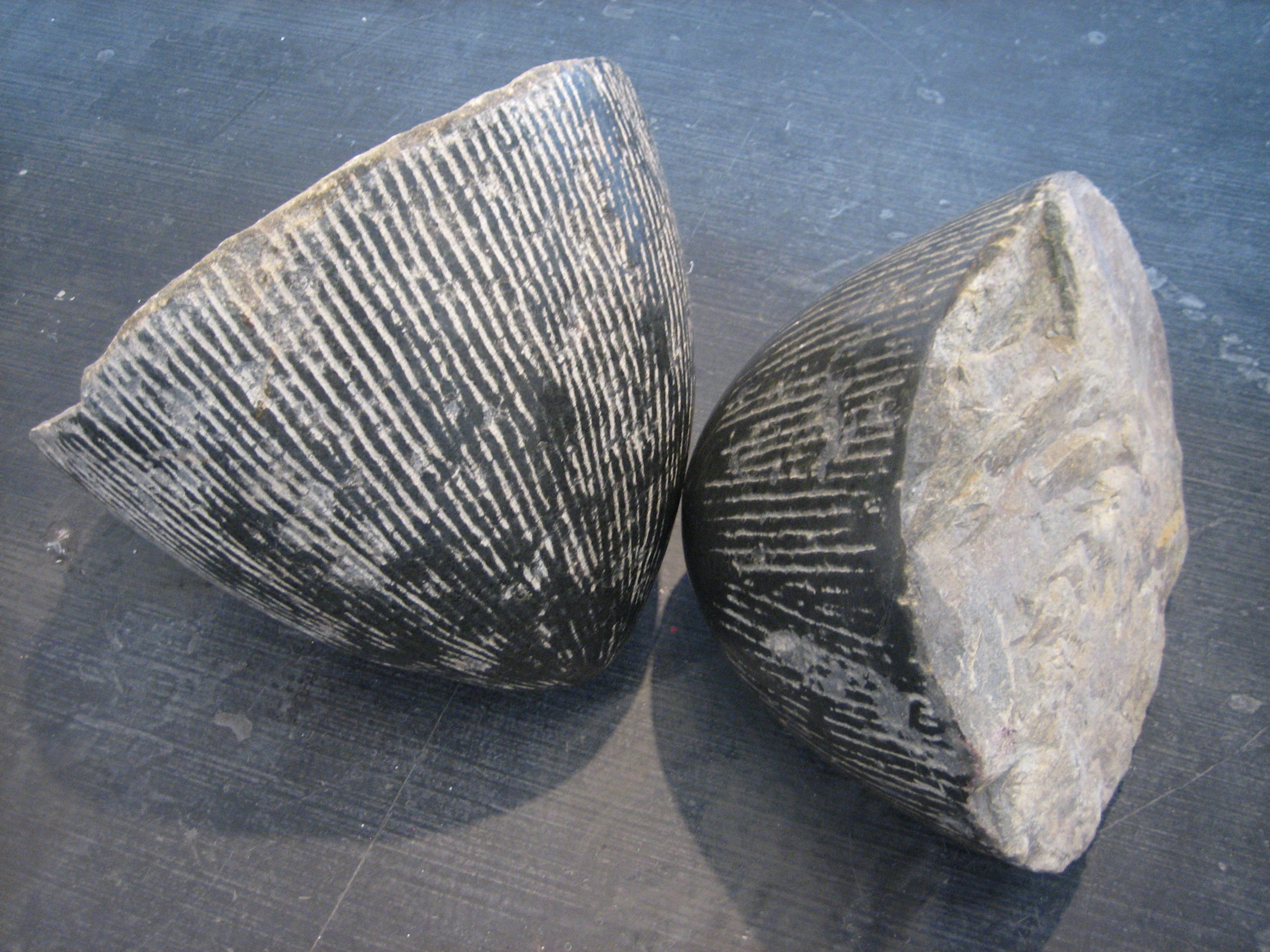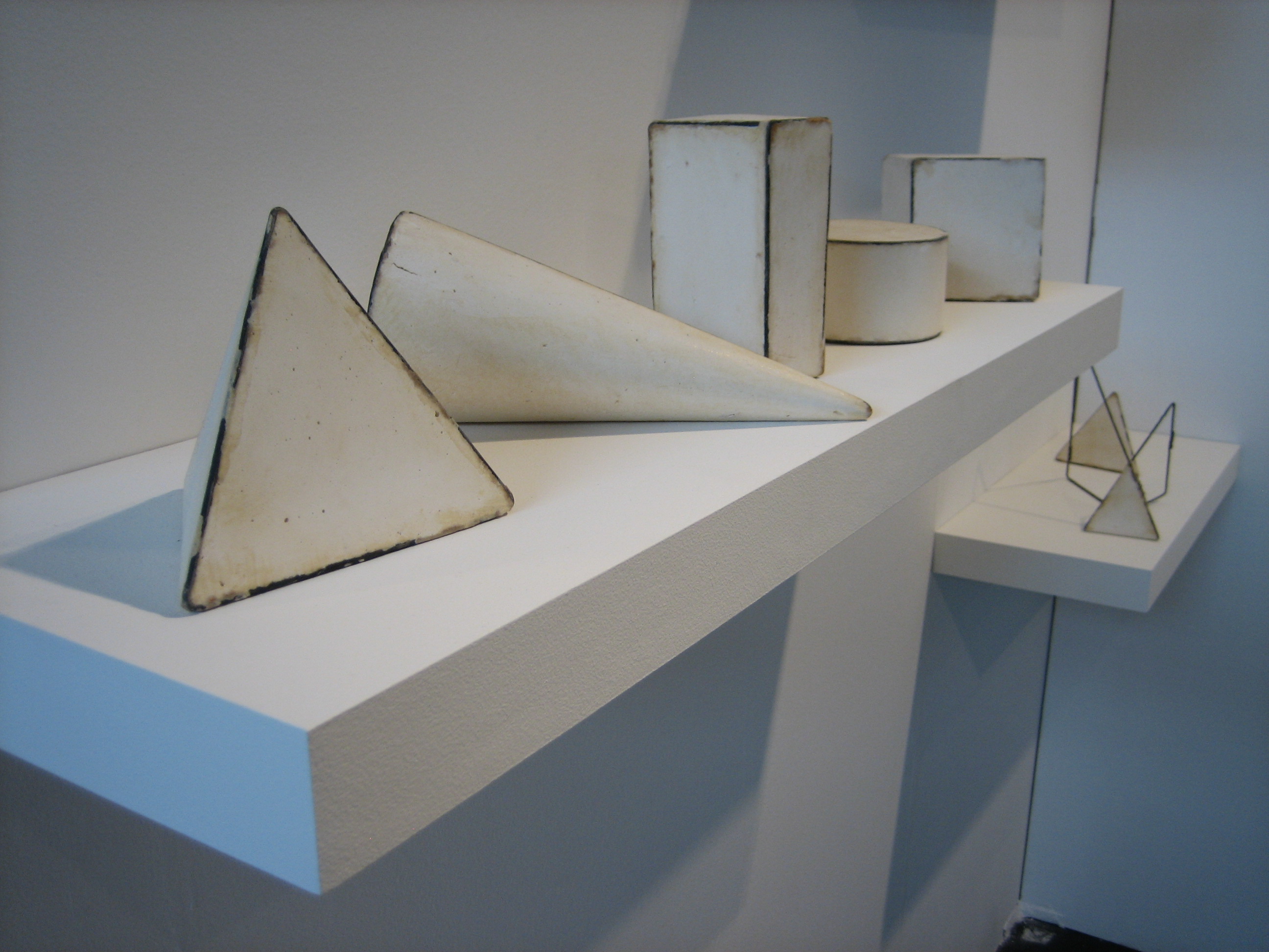 David Fought, “Two Circle Square Fills and Short Cone,” 2014.  Burnt metal, plaster. $2,000.