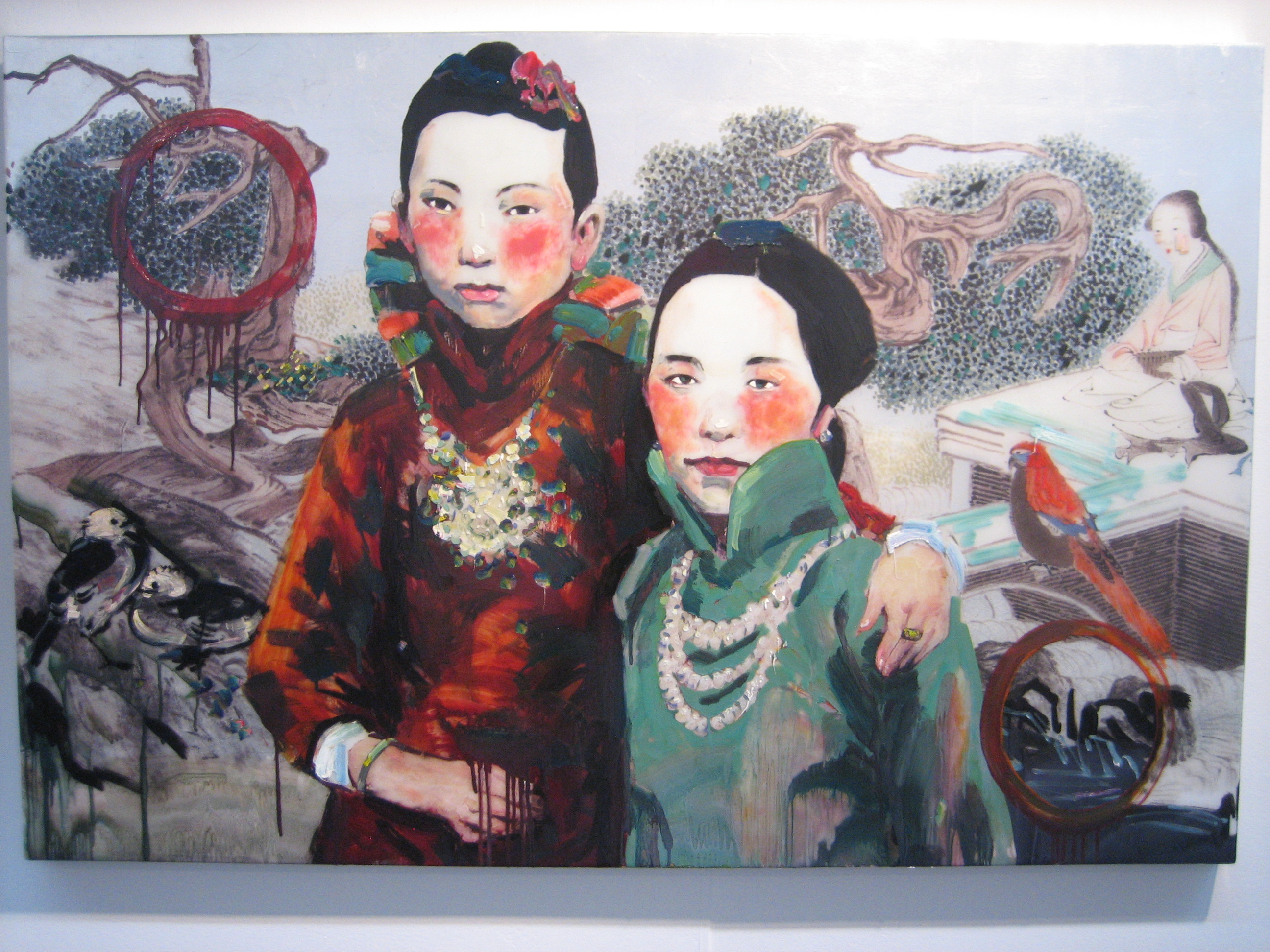 IMG_7330Hung Liu, “Parrot and Girls,” mixed media, 40 x 60 inches.