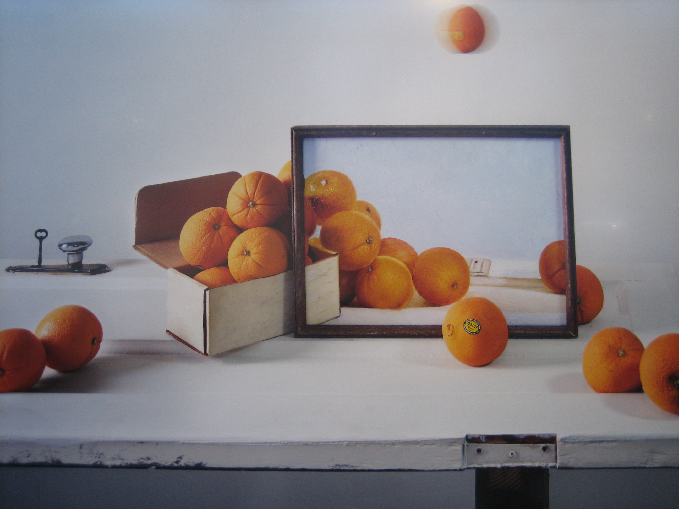 John Chervinsky, “Oranges, Box and Painting on Door,” 2011/14.  Archival inkjet print, 76.2 x 96.5 cm.